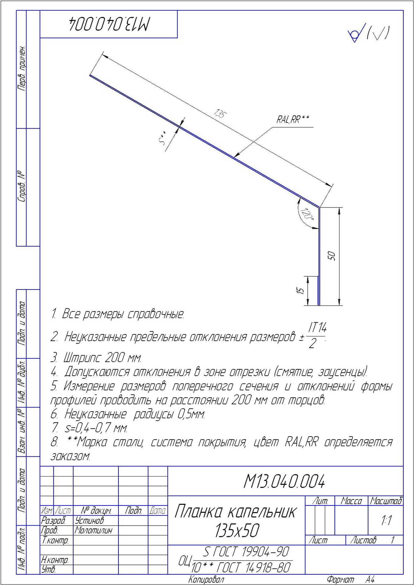 | Защитный слой, г/м2 | Zn 60-100 |