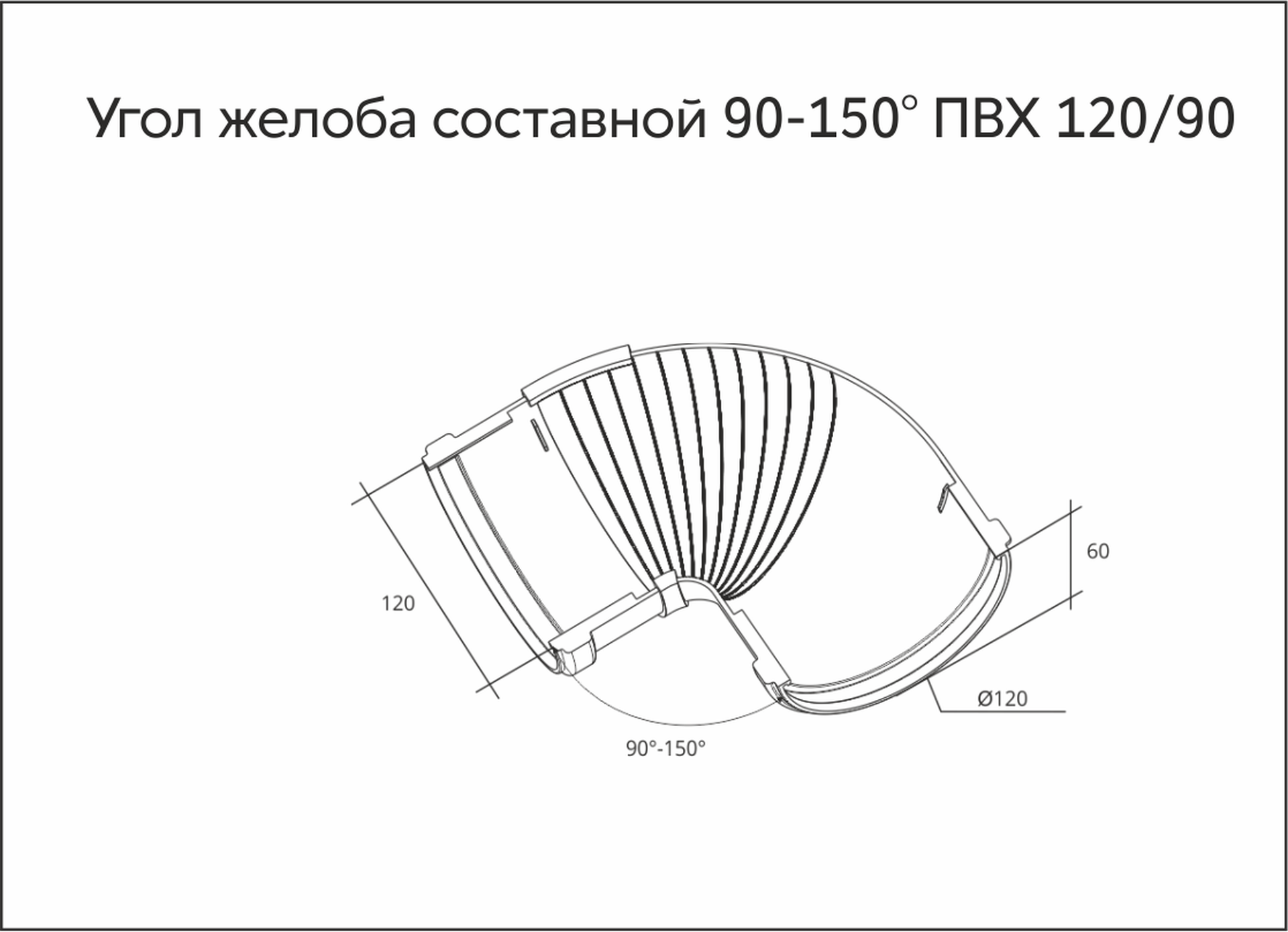 Угол желоба составной предназначен для соединения 2 желобов на углах, отличных от 90°.